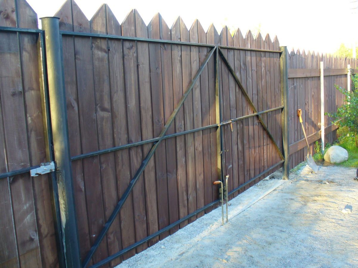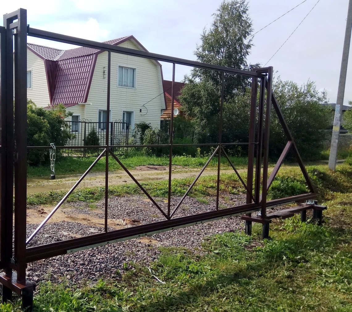 Современный тип ворот рельсового, консольного или подвесного типа. Применяем сваи диаметром 76 или 89 мм.